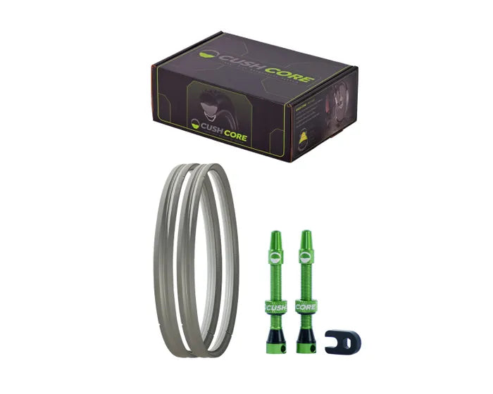 The CushCore absorbs shock to protect your rim from sudden impacts and prevent pinch flats and support sidewalls to eliminate excessive tyre roll in corners, so that you can run lighter tyres for aggressive riding. It also acts as a mechanical bead lock, anchoring the bead inside the rim so that tyre burping is highly unlikely.